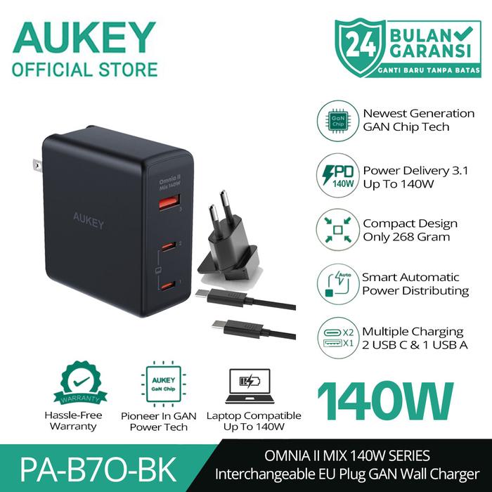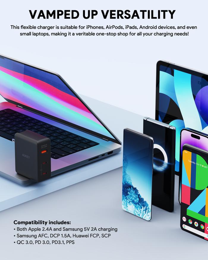 AUKEY Charger Multi Port Type C 140W GAN PD 3.1 Fast Charging PA-B7O