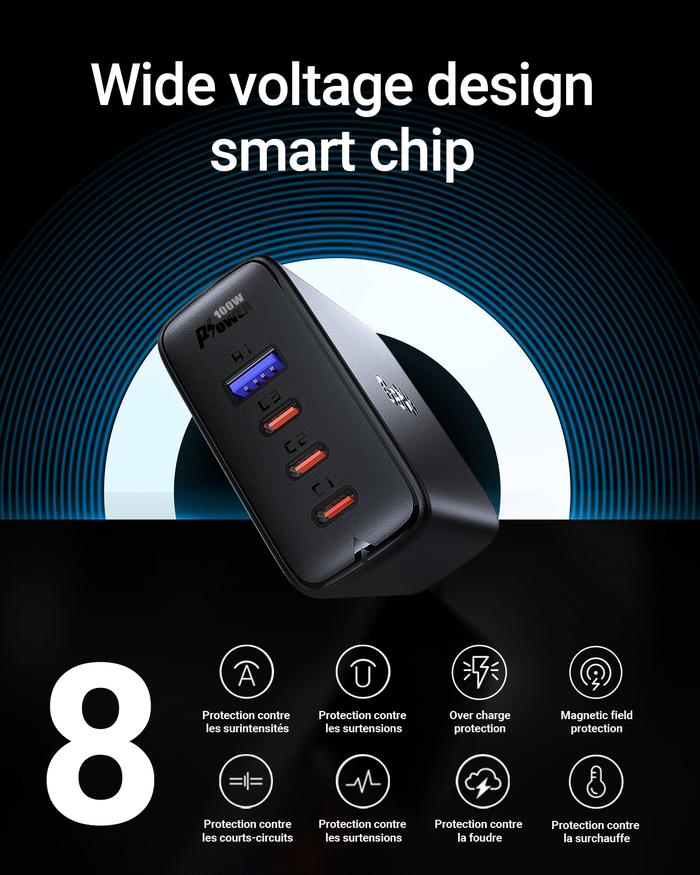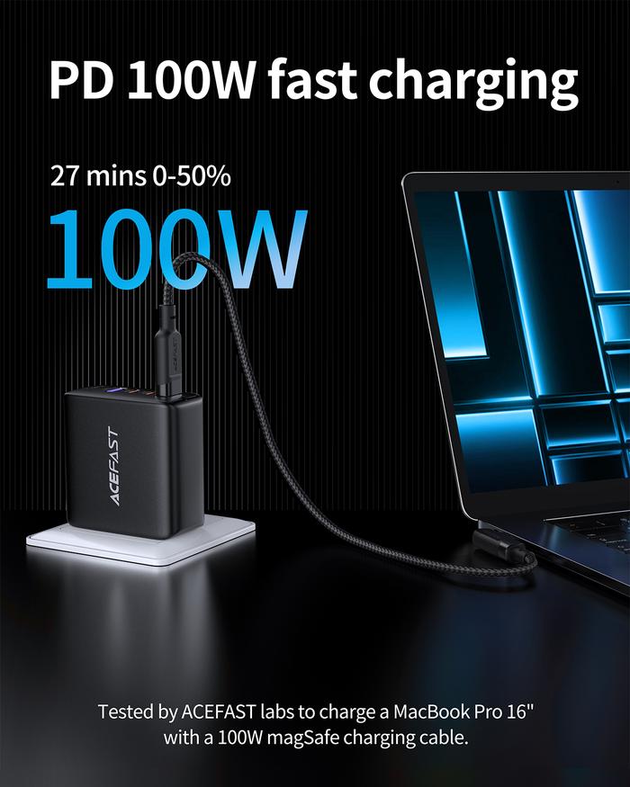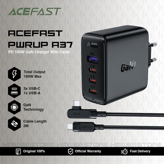 ACEFAST PWRup A37 Kepala Travel Wall Charger Gan PD 100W USB Type-C Power Delivery PD Super Fast