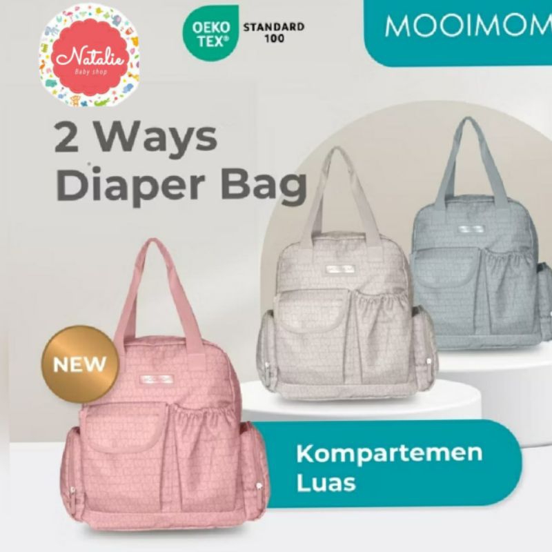 MOOIMOM - Two Ways Diaper Bag Ransel dan Jinjing | Tas Besar Perlengkapan Bayi