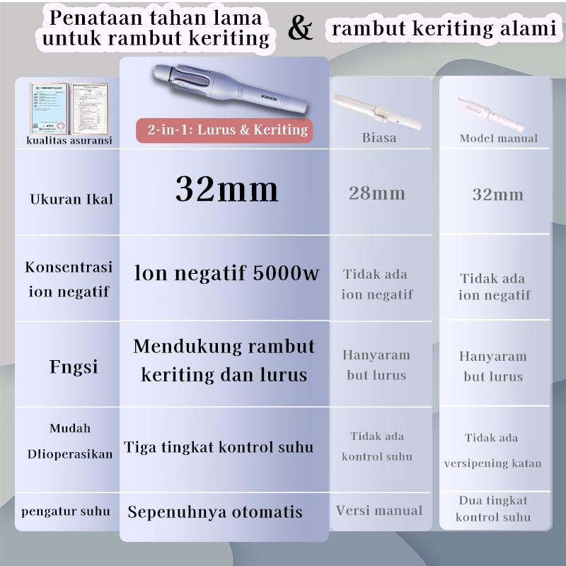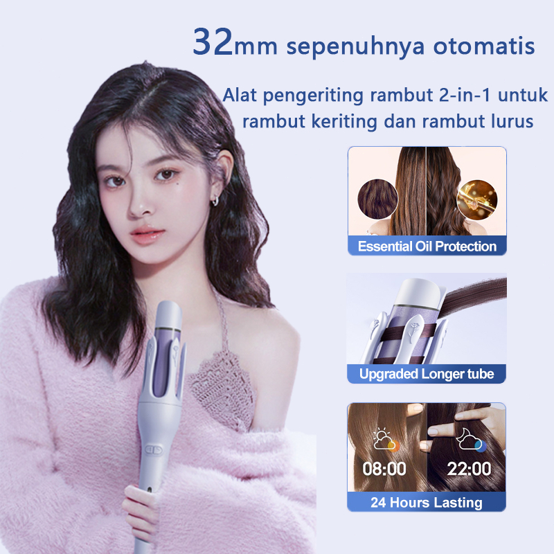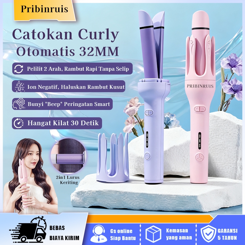 PRIBINRUIS Catokan Pelurus Pengeriting Hair Styler Otomatis 2 in 1 Keramik 32mm Ion Negatif