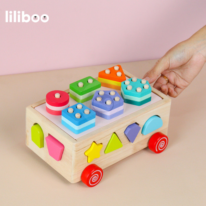 LILIBOO ETSU Mainan Edukasi Anak Montessori Kayu Shape Sorter Wan 3in1