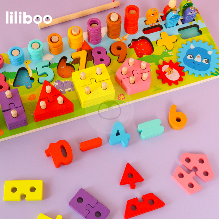 LILIBOO AIKA Mainan Edukasi Anak Montessori Kayu Puzzle Board 3D 5in1 Shape Matching