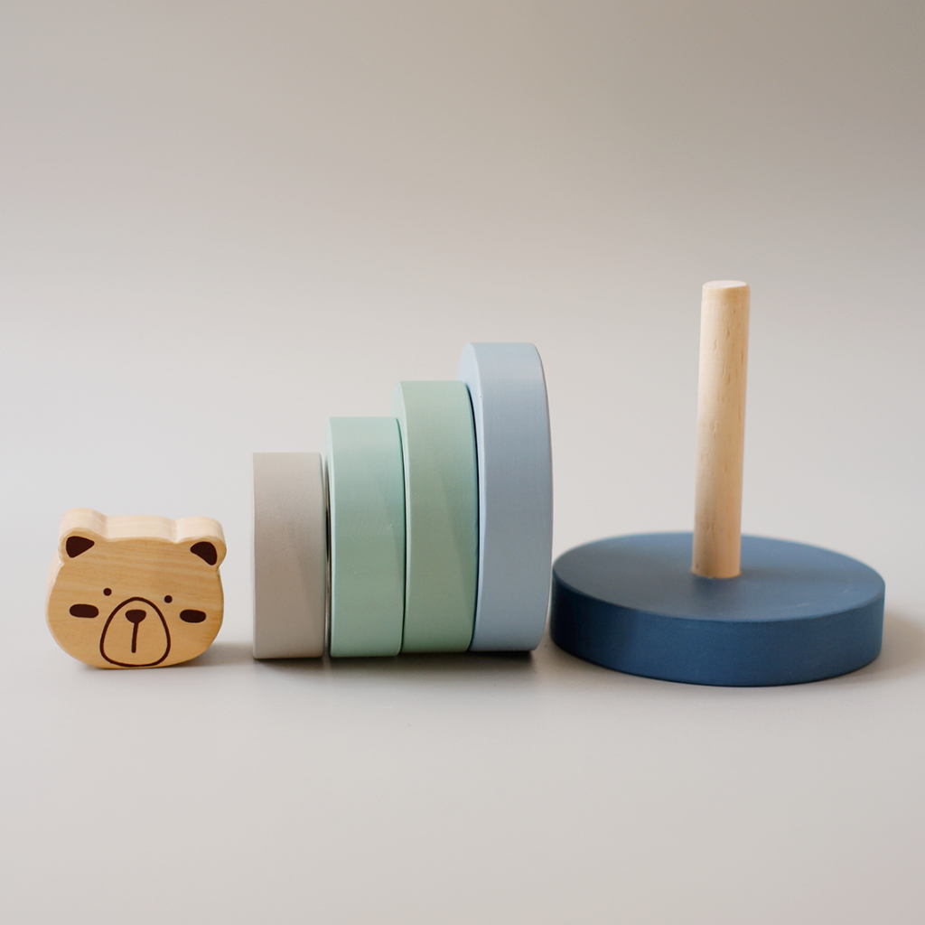 Lettering and Life Colorful Bear Ring Stacker Wooden Toys – Stacking Toy Stacking Ring Educational Toy – Montessori Toy