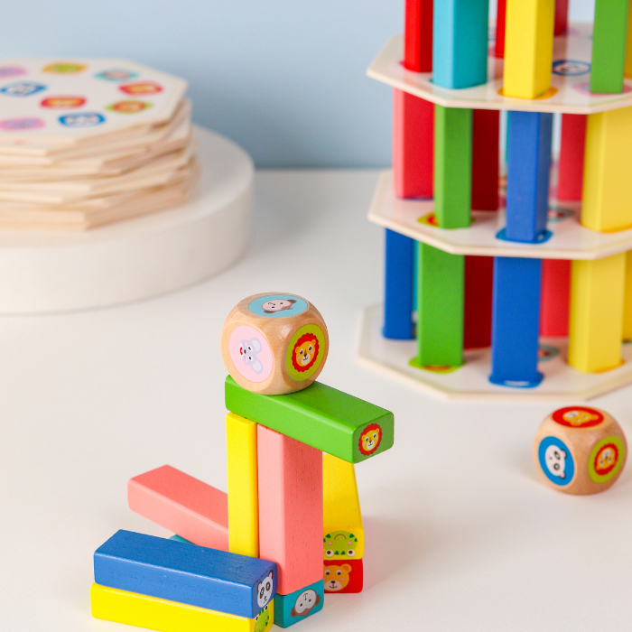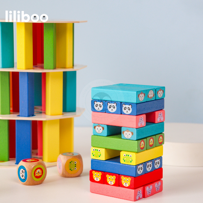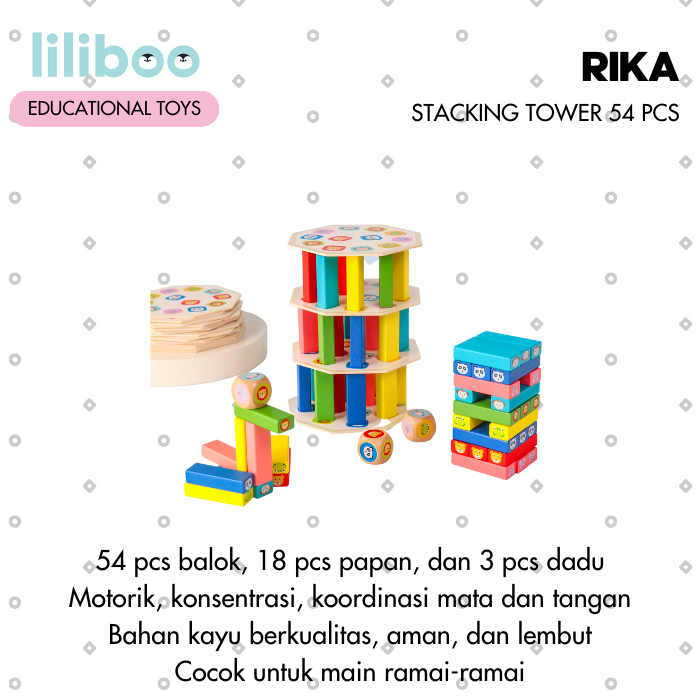 LILIBOO RIKA Mainan Edukasi Anak Montessori Kayu Stacking Tower Balok Susun Domino 54 PCS Family Game