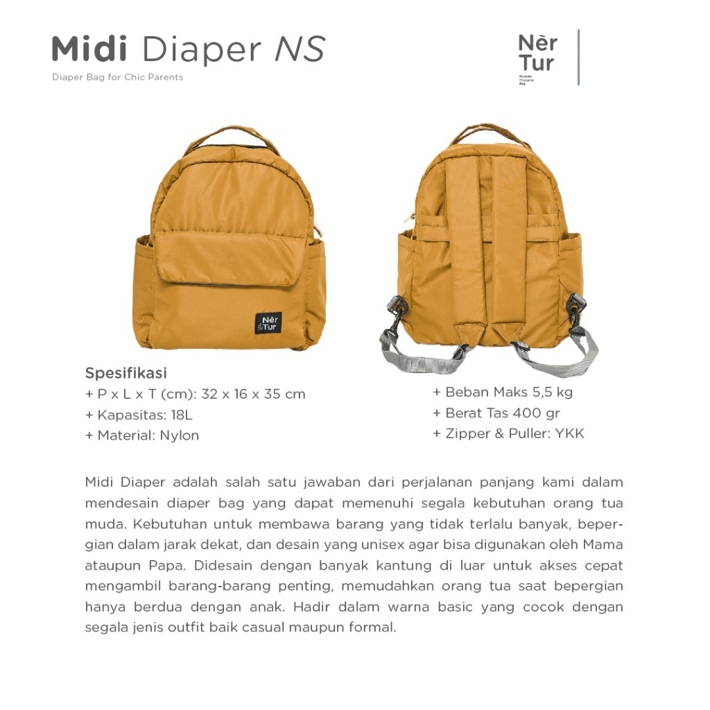 NERTUR Tas Perlengkapan Bayi Diaper Bag Midi Diaper NS