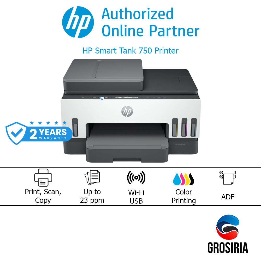 HP Printer Smart Tank 750 All In One Print Scan Copy Wireless Duplex ADF [6UU47A]