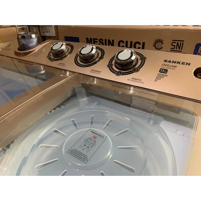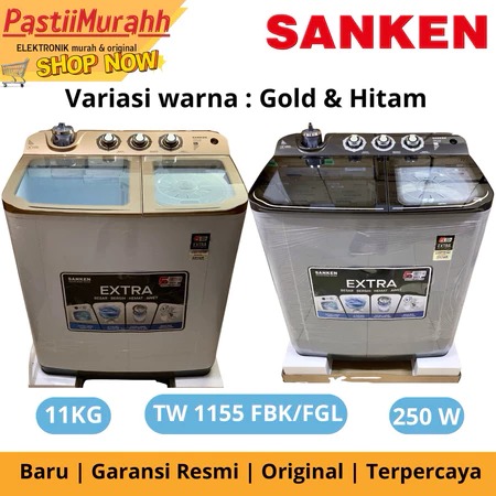 MESIN CUCI - MESIN CUCI SANKEN 2 TABUNG 11KG TW-1155 EXTRA LOW WATT PINTU SAFETY GLAS SOFT CLOSE GARANSI 5 TAHUN