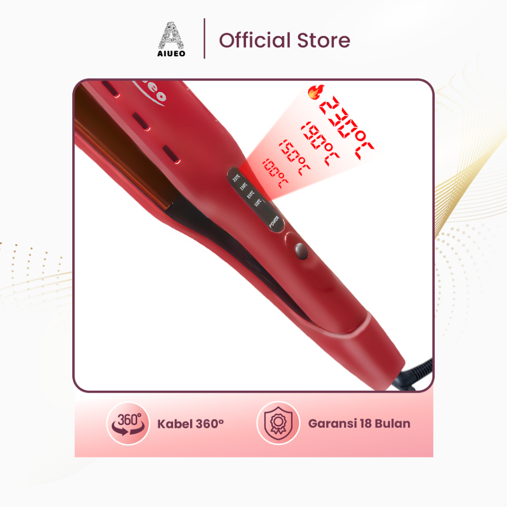 Amelia 9940 Hair Straightener Curly & Lurus - Teknologi Nano Silver - Merah