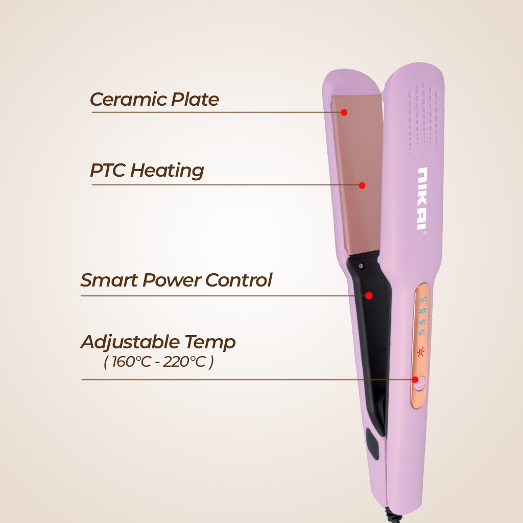 NIKAI N-9759 Catokan Rambut 2 in 1 Pelurus dan Curly untuk Meluruskan dan Keriting Wanita