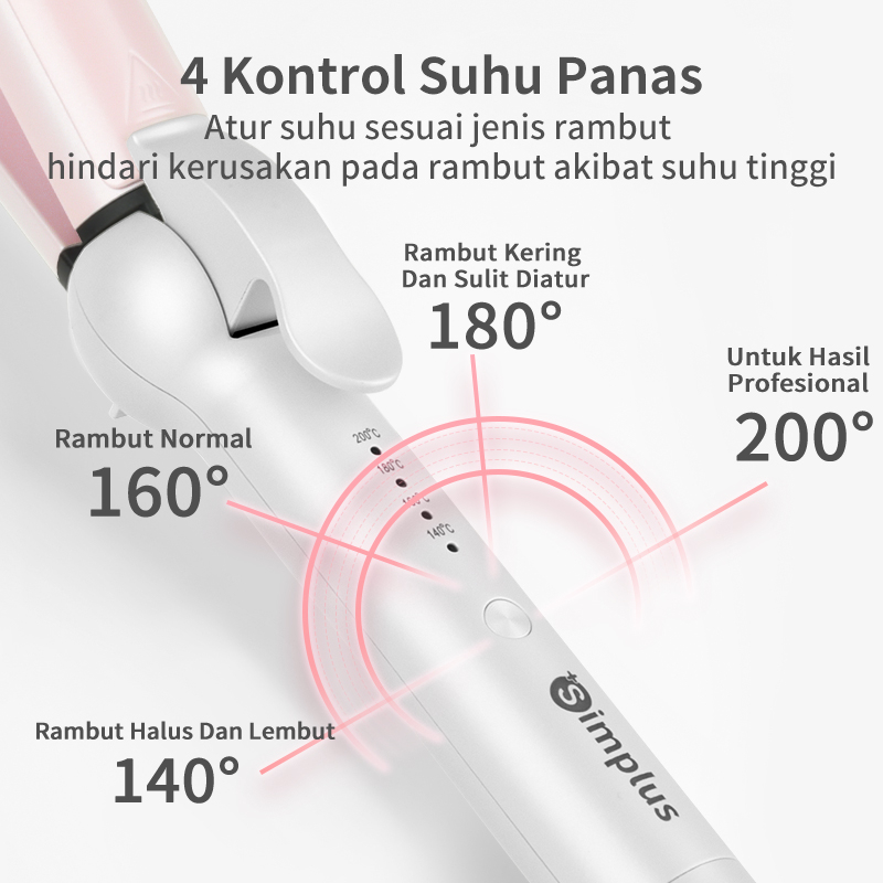 SimplusPink catokan rambut 1 Tombol pengaturan,2 fungsi catokan curly