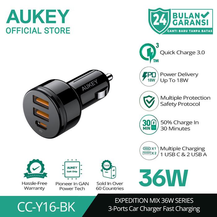 AUKEY 3-Port Car Charger Expedition series model CC-Y16-BK
