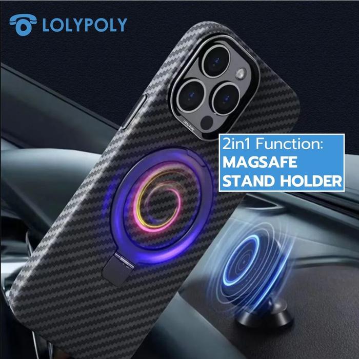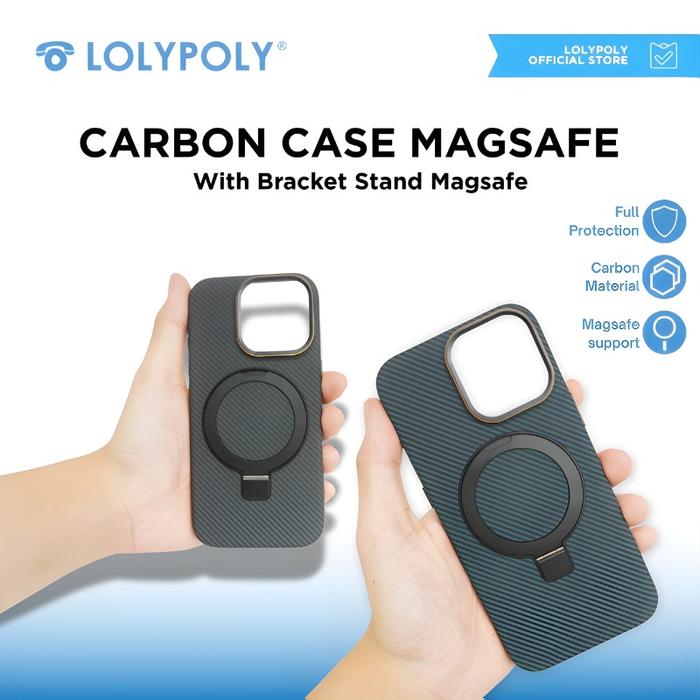 LOLYPOLY Case Carbon Magsafe With Stand Holder For iPhone Series