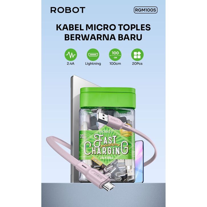kabel data Robot RGM100S Micro USB Data Kabel Data Colorful 1 Toples isi 20pcs new RGM100