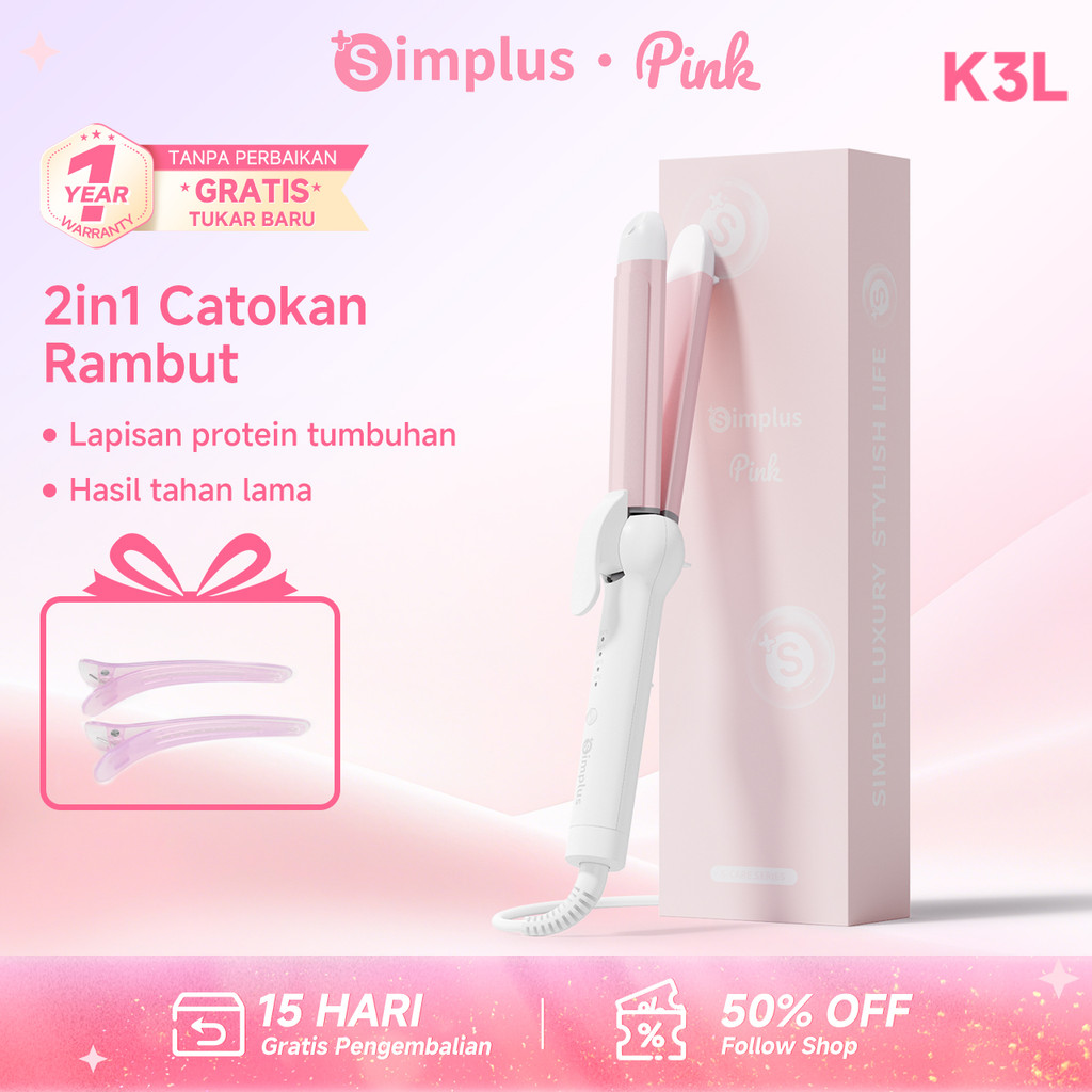 SimplusPink catokan rambut 1 Tombol pengaturan,2 fungsi catokan curly