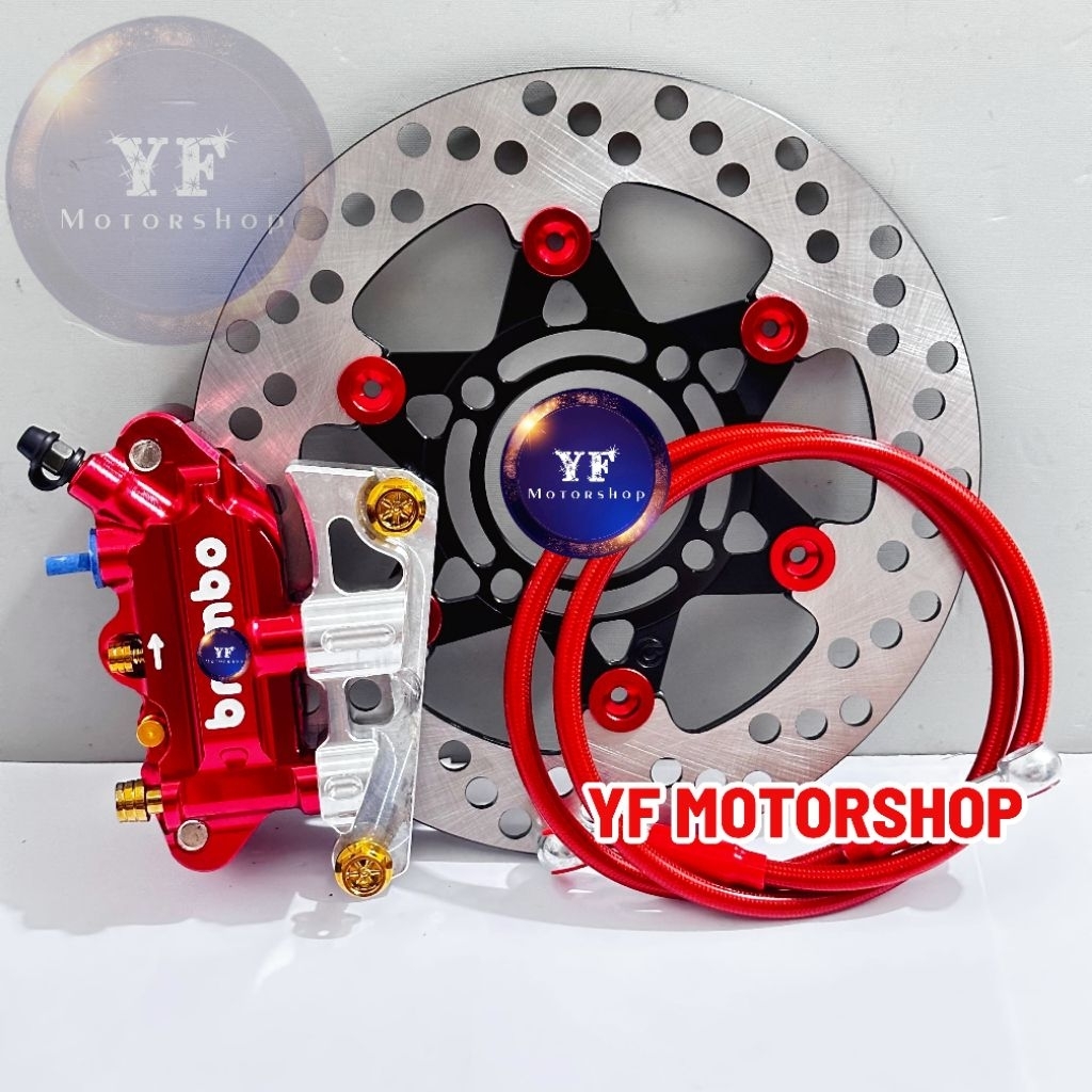 Paket kaliper monoblok 4 piston+ breket + disc piringan BEAT, VARIO, SCOOPY, GENIO, MIO SMILE, MIO SOUL DISC LUBANG 4 uk