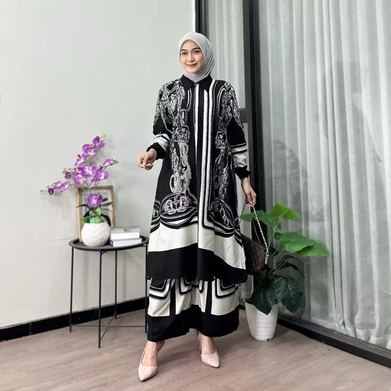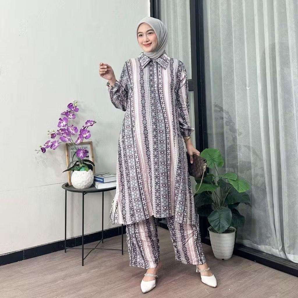 Raya set tunik rayon motif one set tunik jumbo setelan rayon motif