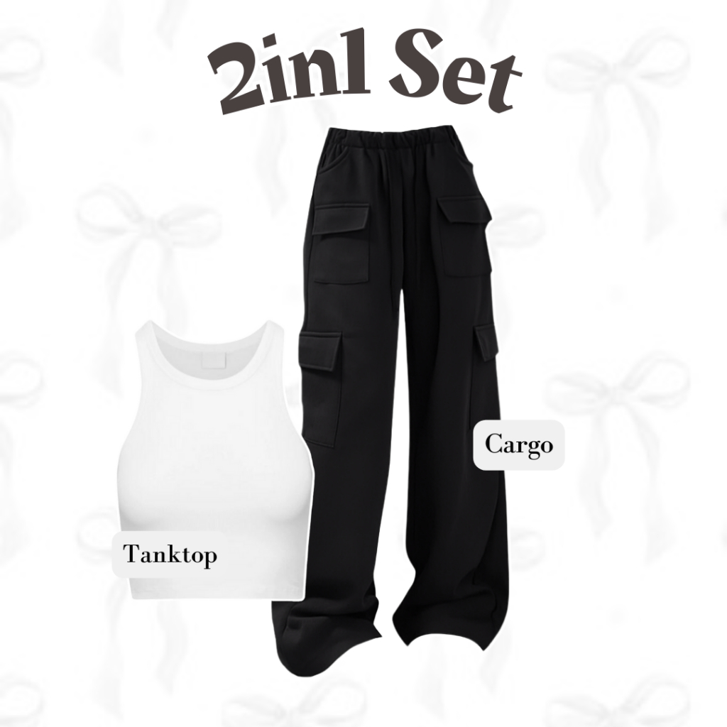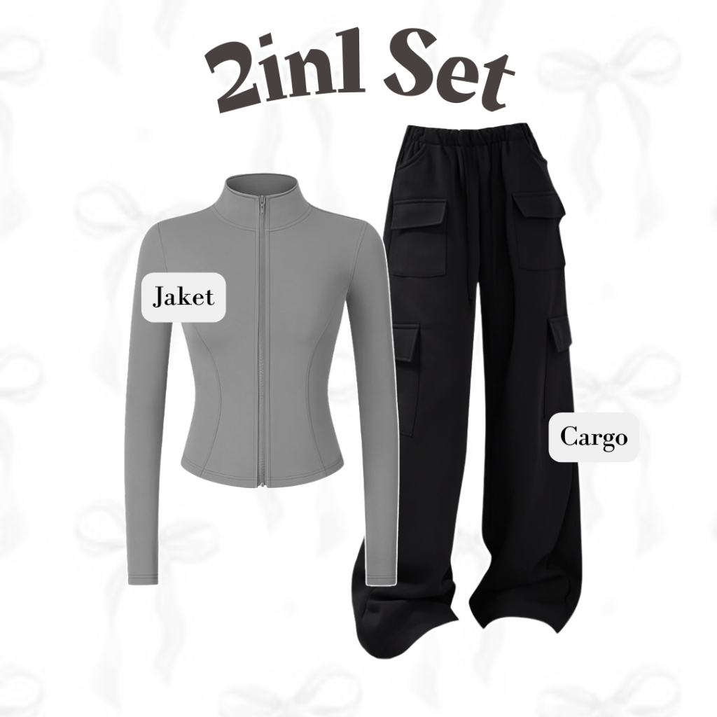Oneset One set 3in1 setelan olahraga wanita jaket hoddie celana cargo kargo kulot tanktop tangtop | OOTD Outfit casual c