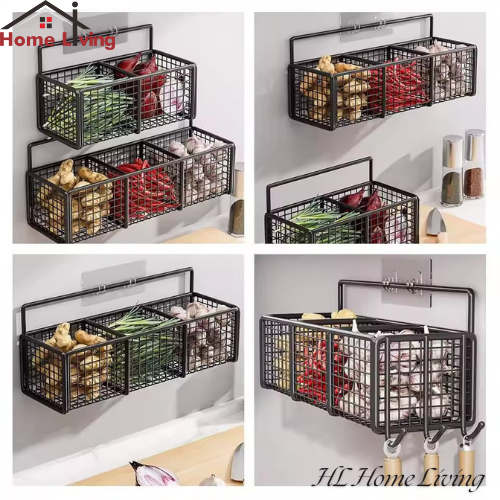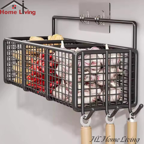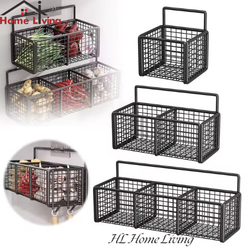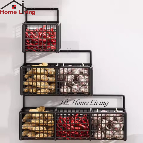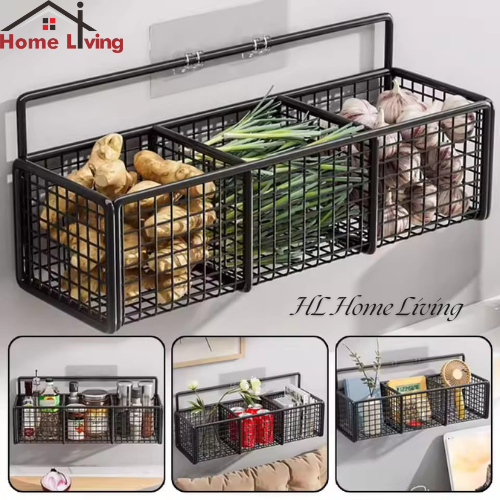 HL Rak Keranjang Jaring Sekat Tempel Dinding Rak Gantung Tempat Penyimpanan Bumbu Dapur
