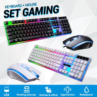 Paket Keyboard Gaming dan Mouse USB Full Size RGB LED PC