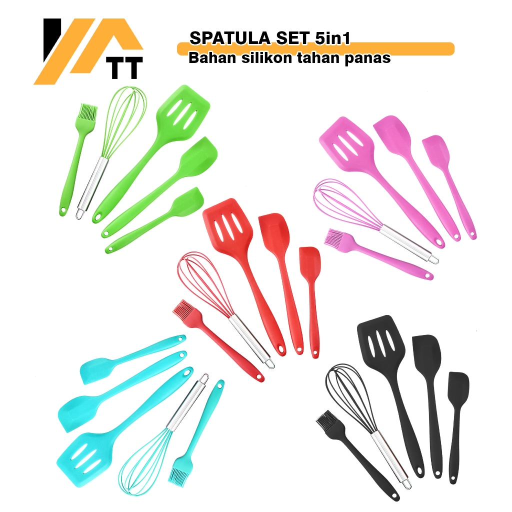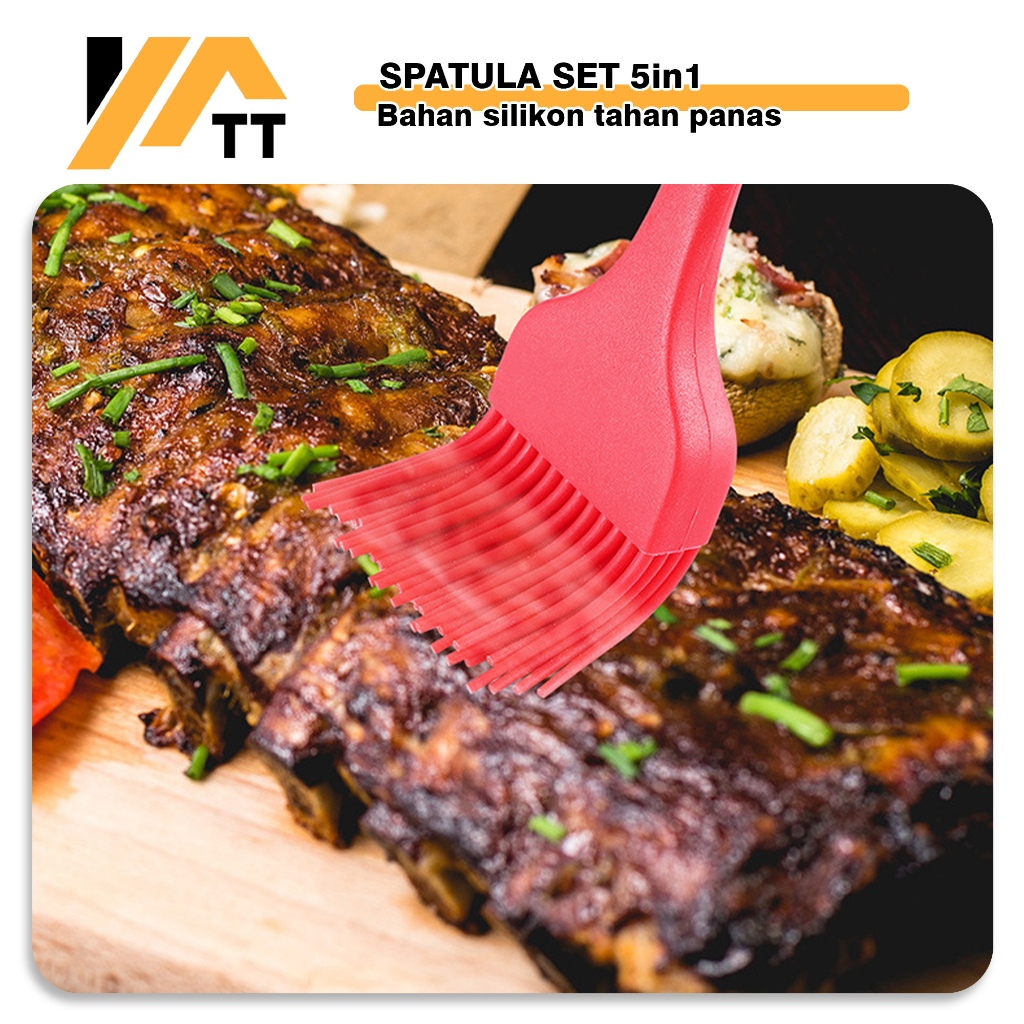 YATT Spatula Silikon Set Silicone Utensil Alat Masak 5 in 1 Sutil Kuas Silikon Tahan Panas BPA-Free