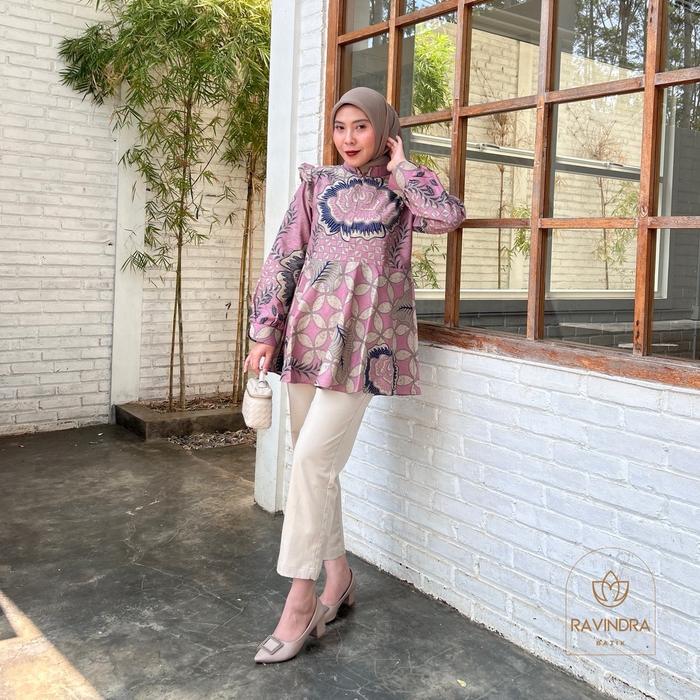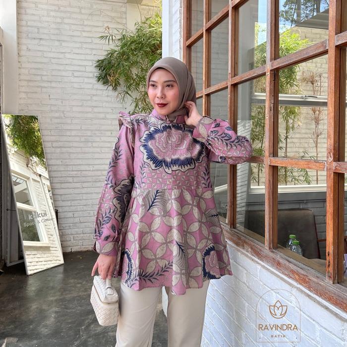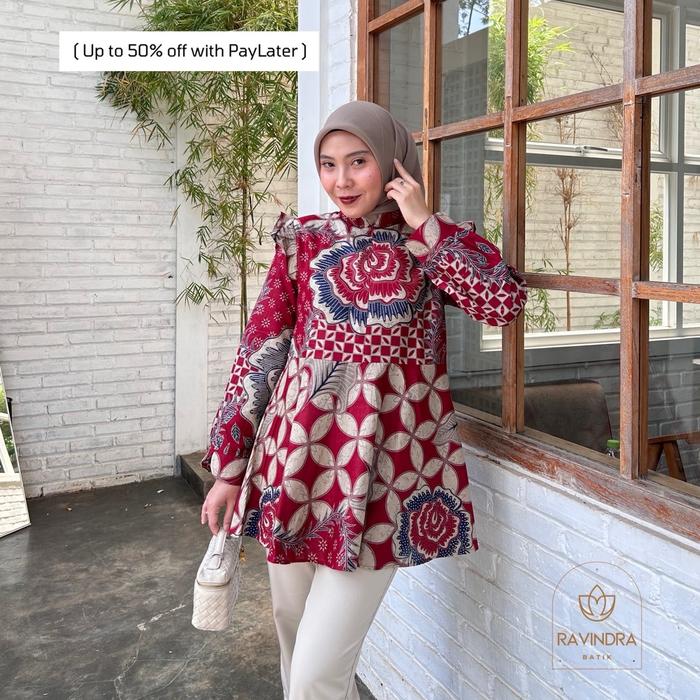 BATIK RAVINDRA BLOUSE BATIK KAMILA ATASAN WANITA KATUN - MERAH, S