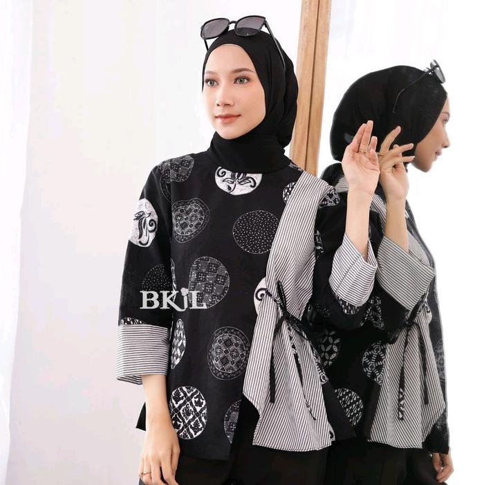 ATASAN BATIK WANITA KERJA KATUN PEKALONGAN SERAGAM KANTOR MOTIF BAJU PANJANG NYAMAN - PARANG AGENG, M