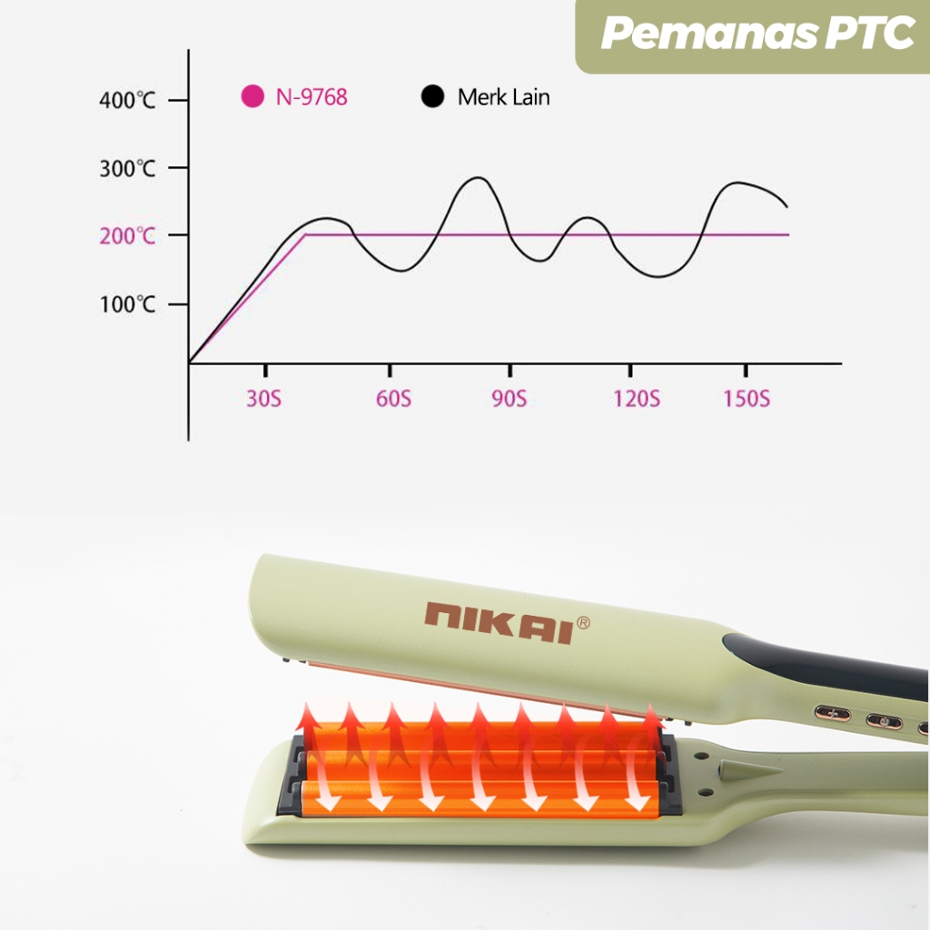 Catokan Rambut NIKAI N-9768 2in1 Pelurus & Pengeriting - Ion Negatif LCD Display