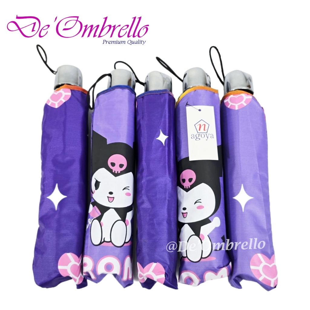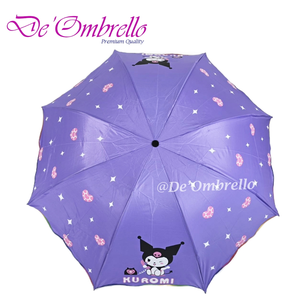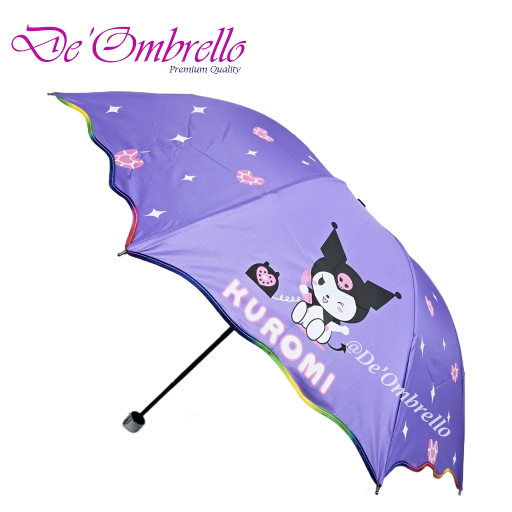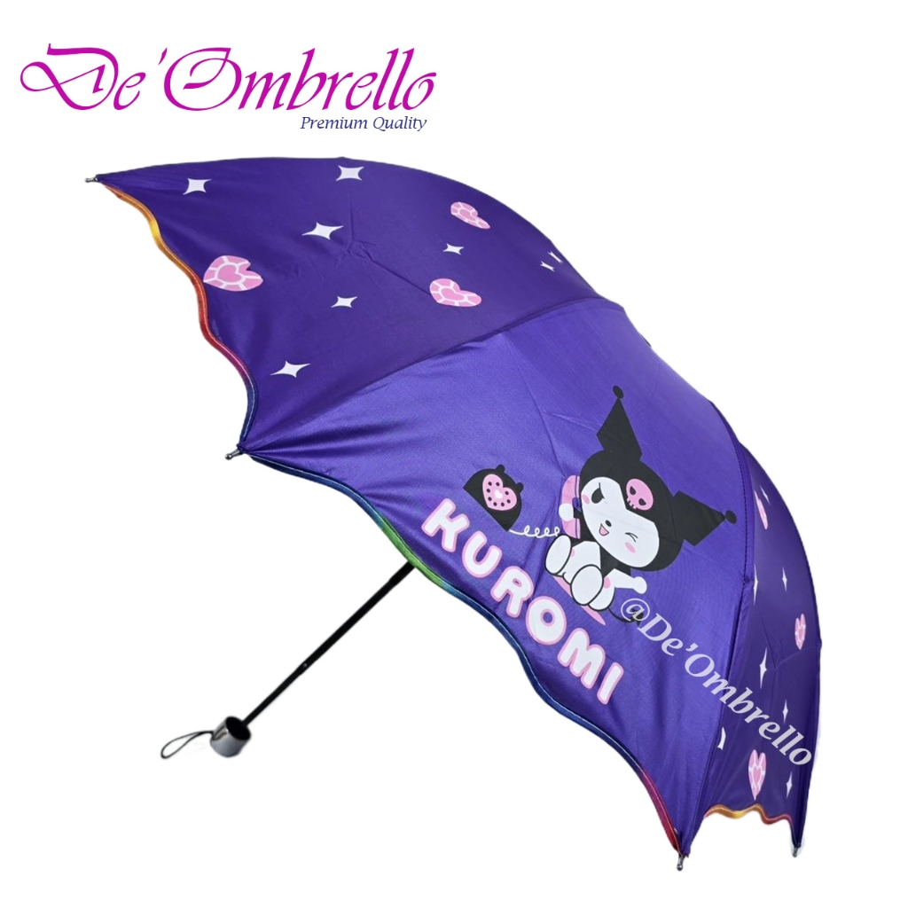 561Payung Lipat 4 Fancy Anti UV Motif Kuromi Lapis Silver ANTI UV/Payung Fancy Premium Quality