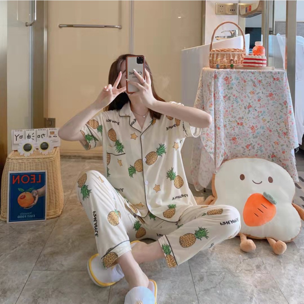 Lovera Baju Tidur Piyama Set Kemeja CP Lengan Pendek Celana Panjang Premium Banyak Motif 4