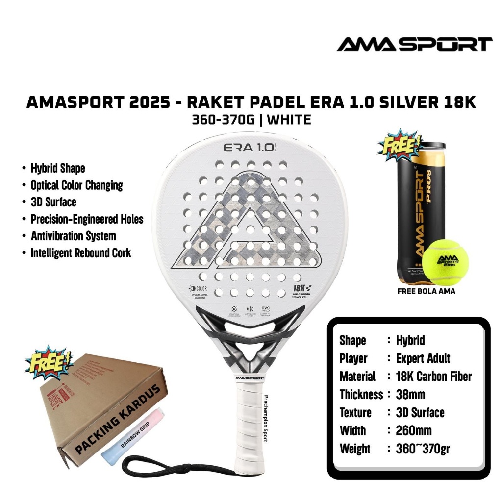 Raket Padel AMASPORT ERA 1.0 Silver 18K 360-370G White