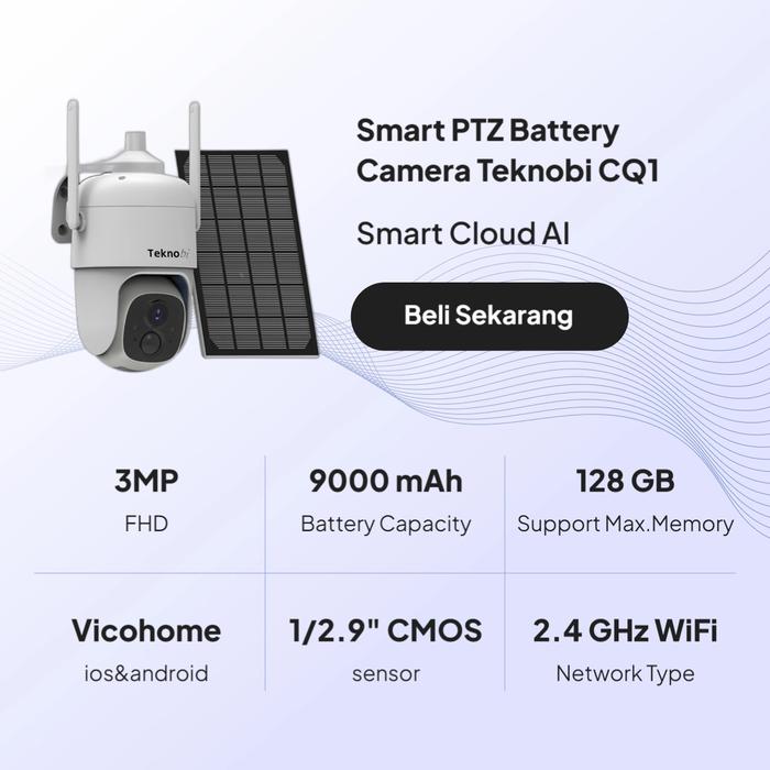 TEKNOBI IP CAMERA CCTV PTZ SOLAR BATERAI CQ1 KAMERA AI AUTO TRACKING PORTABLE - KAMERA + SOLAR