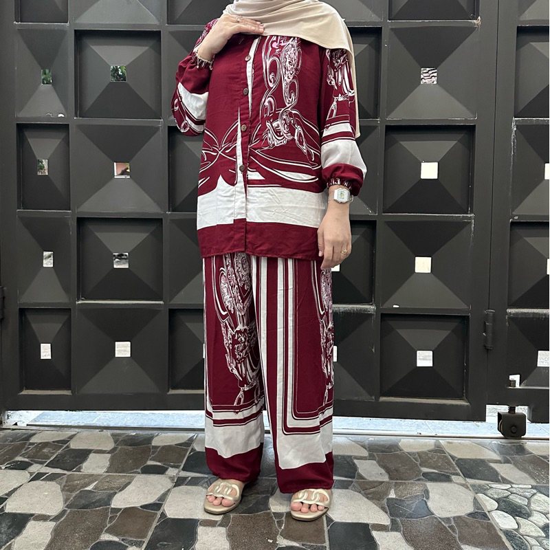 One set Wanita Setelan wanita Jumbo setelan rayon motif terbaru Setelan Jumbo one set Rayon XXL