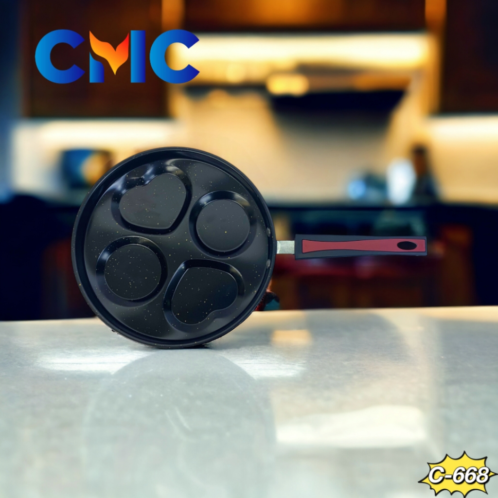 CMC[C-668]Teflon 4 Lubang Variasi Bulat Love Wajan Panci Telur Anti Lengket