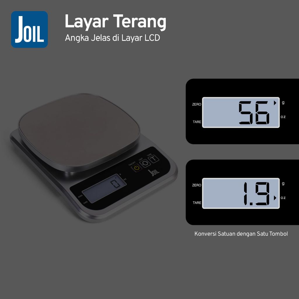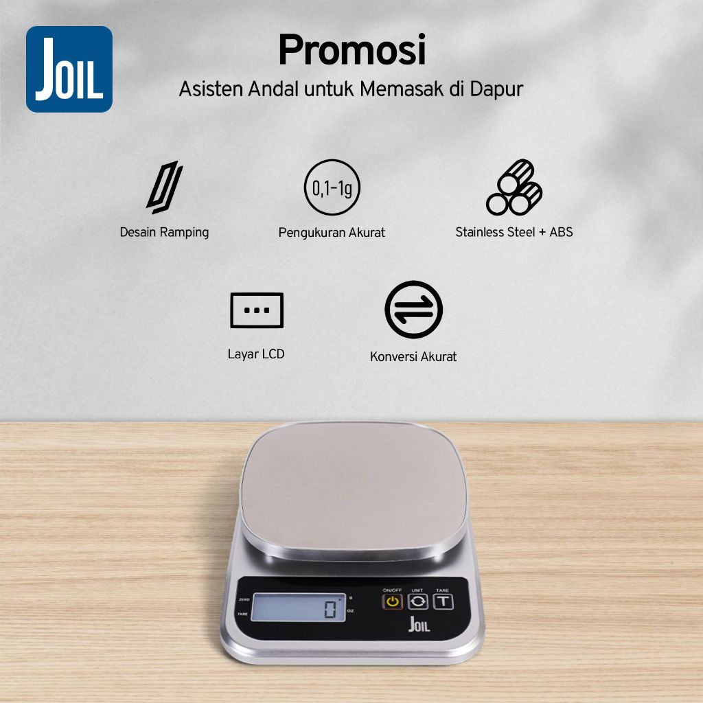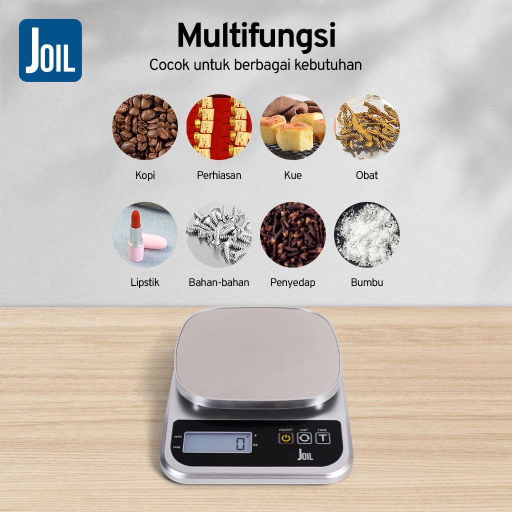 Joil Timbangan Dapur Digital Stainless Steel Tare & Chargeable D9
