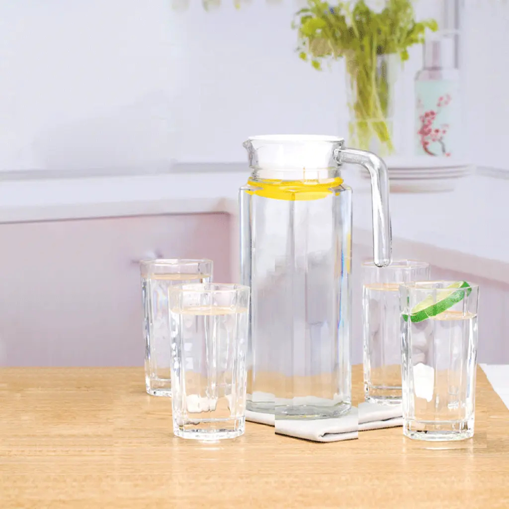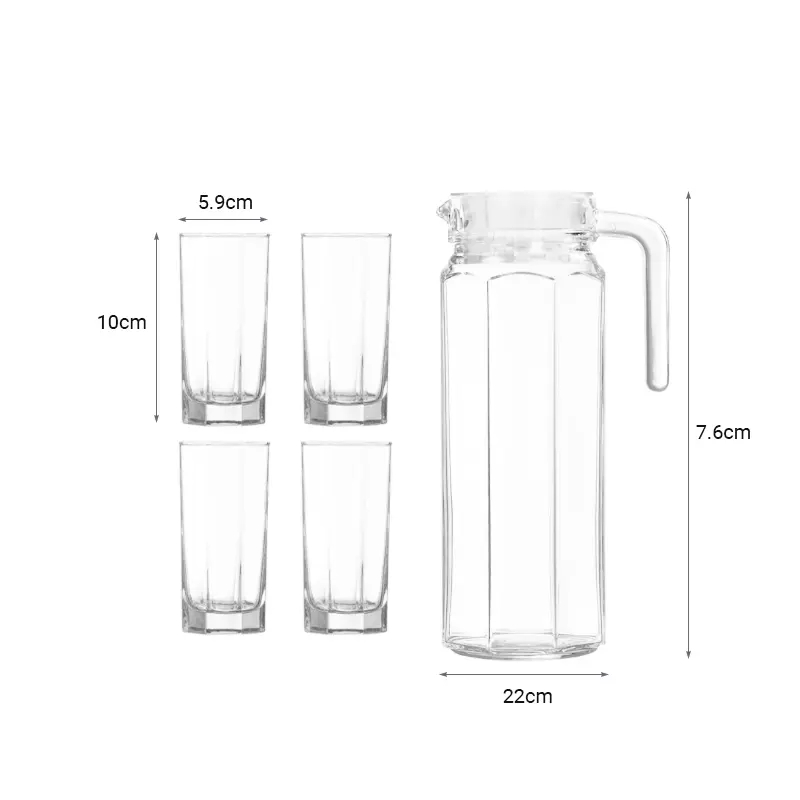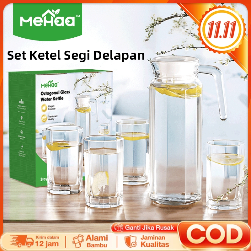 MeHaa Teko Besar 1000ml + 4 Cangkir 280ml-Set Minuman Segi Delapan,Praktis untuk Acara & Sehari-hari