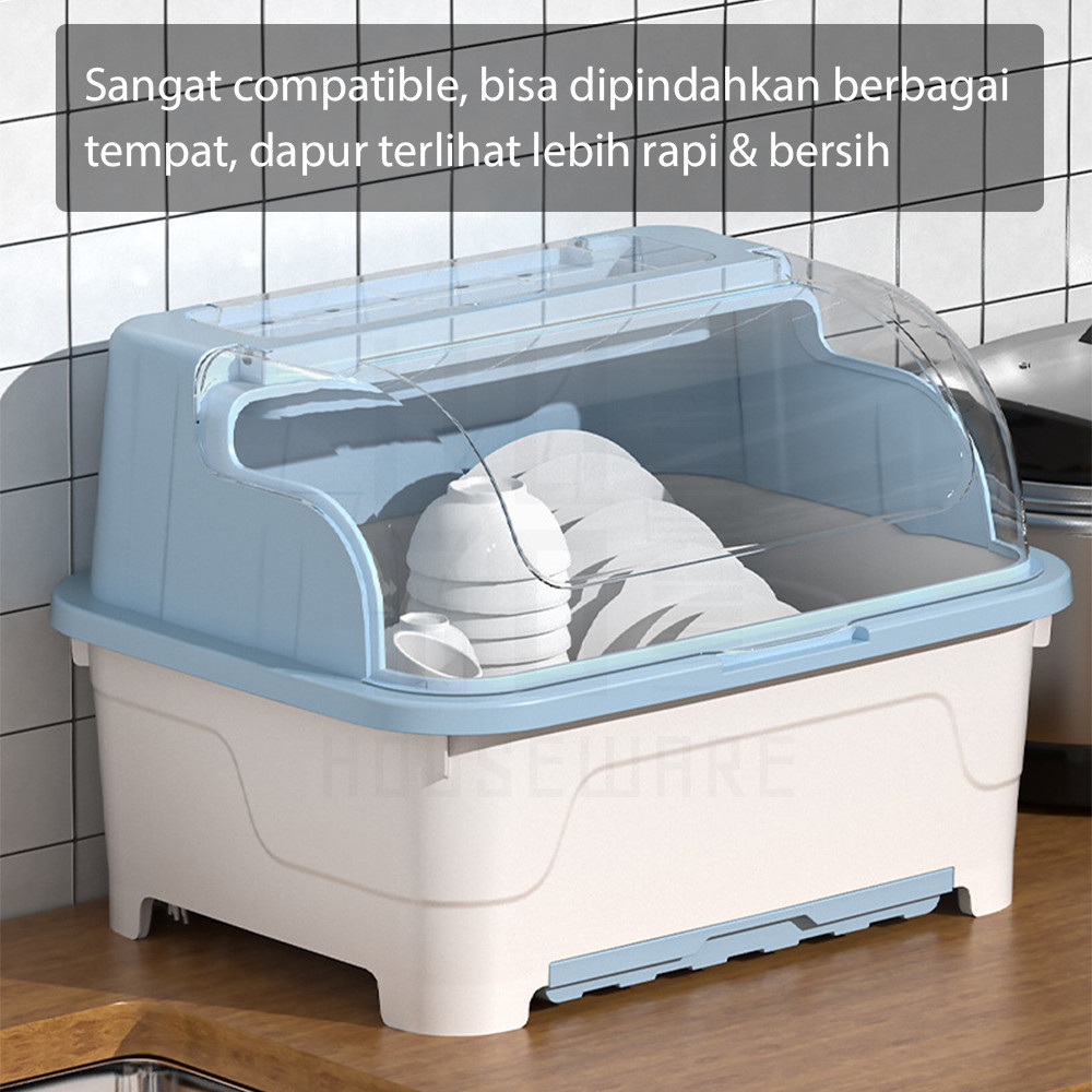 HUGO Rak Pengering Piring Mangkok Rak Piring Plastik dengan Tutup Rak Piring Mangkok Sendok Garpu Rak Dapur Multifungsi