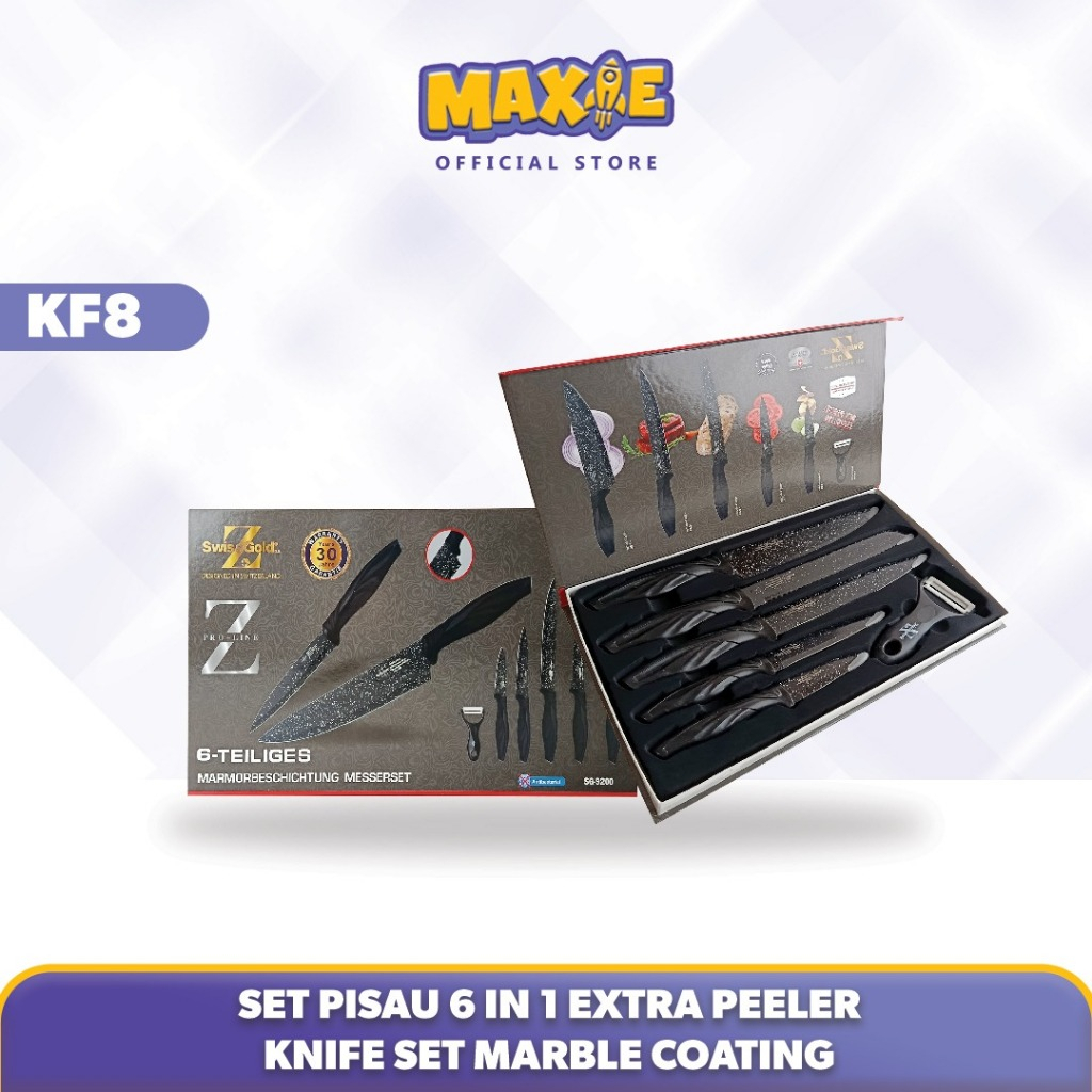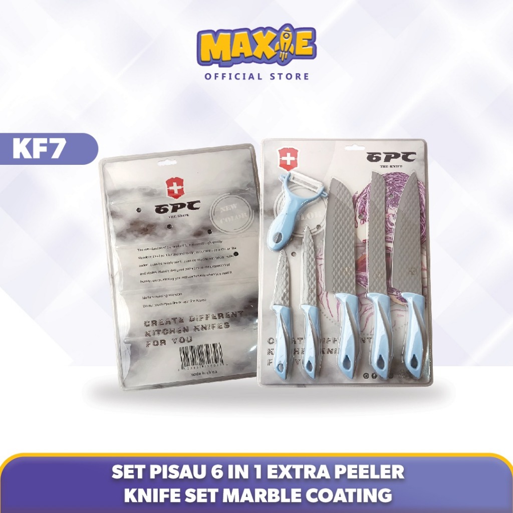 Pisau Set 6 in 1 Keramik Knife Set Marble Coating Pemotong Daging Buah