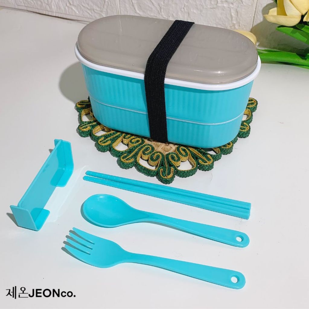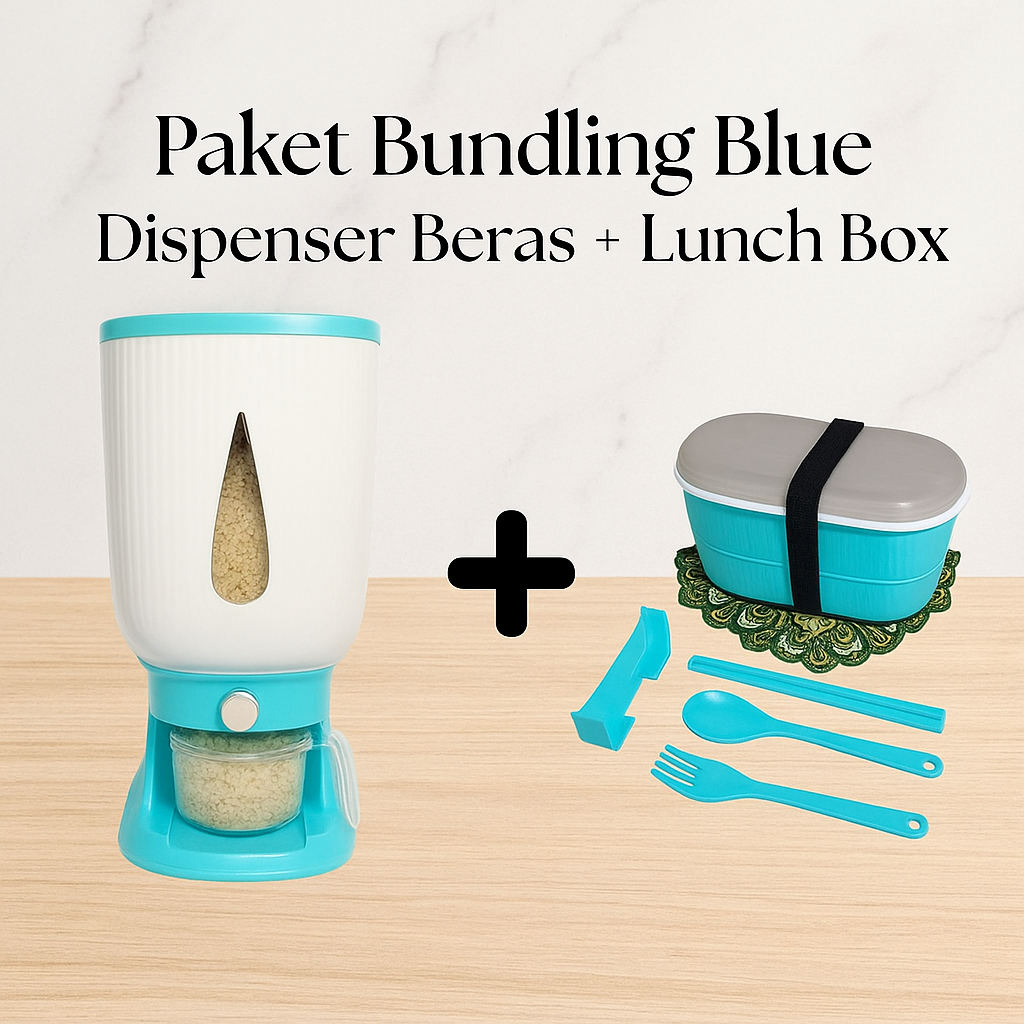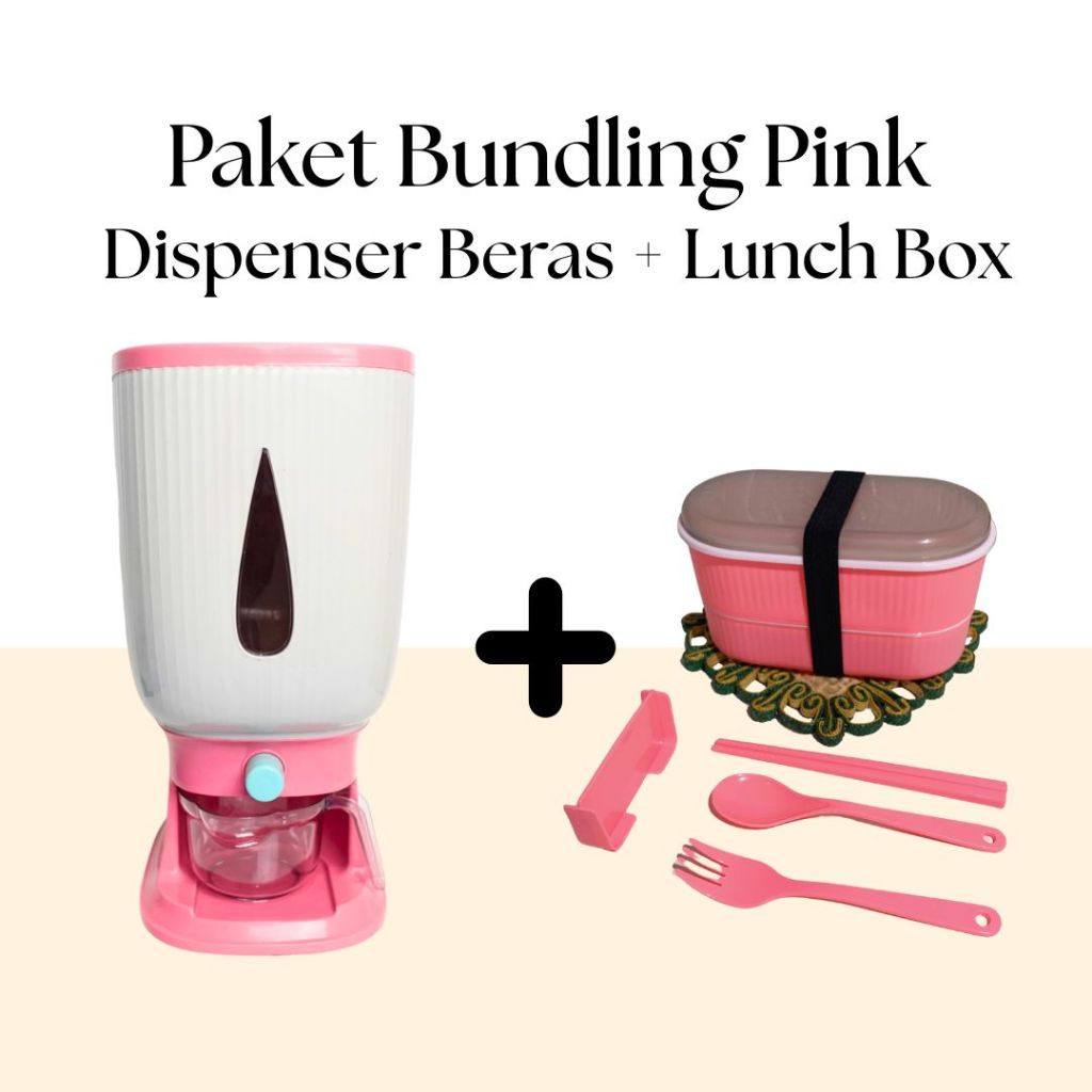 Paket Bundling Hemat Dispenser Beras Trilins & Lunch Box 2 Tingkat Food Pack Modern Sendok Garpu
