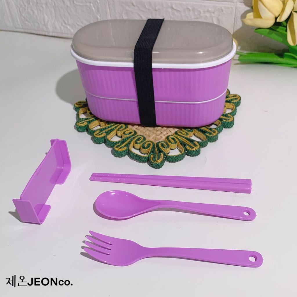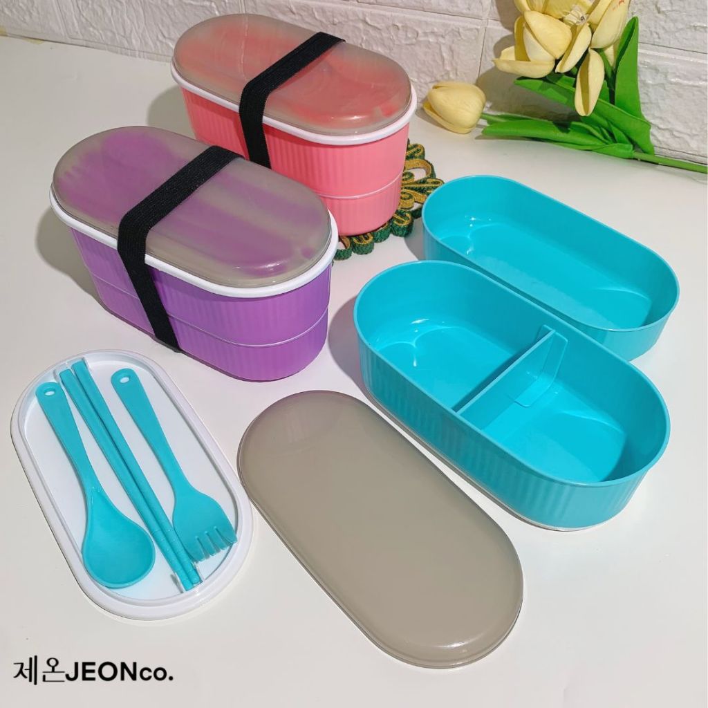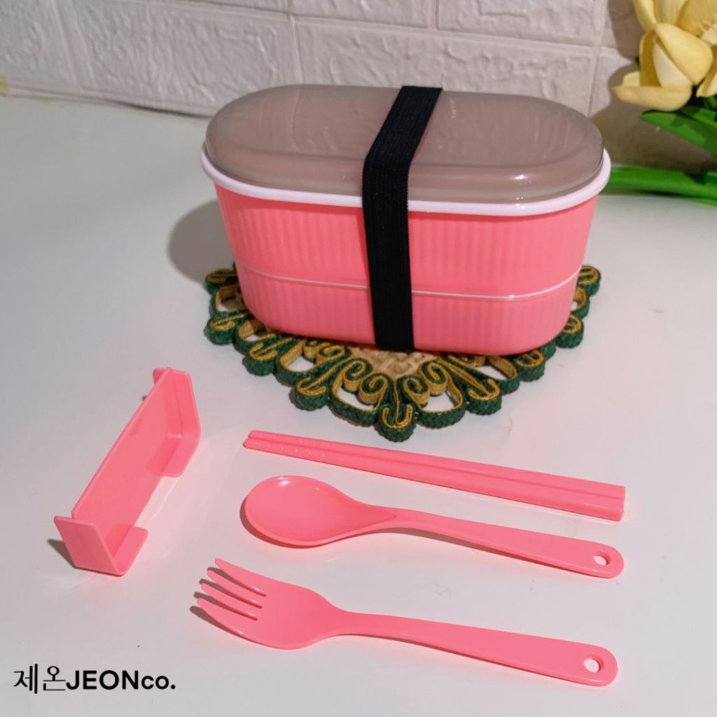 Paket Bundling Hemat Dispenser Beras Trilins & Lunch Box 2 Tingkat Food Pack Modern Sendok Garpu