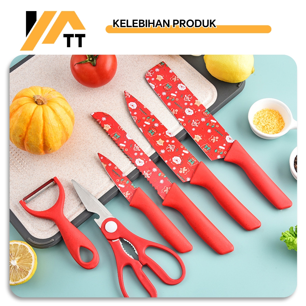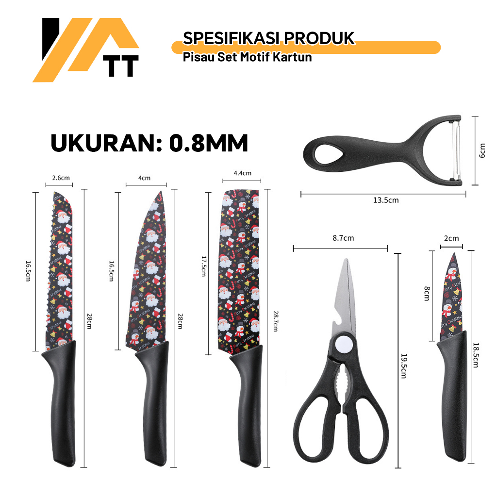 YATT Pisau Dapur Motif Kartun Lucu Bahan Stainless / Kitchen Knife Set 6Pcs Premium Bahan Tebal