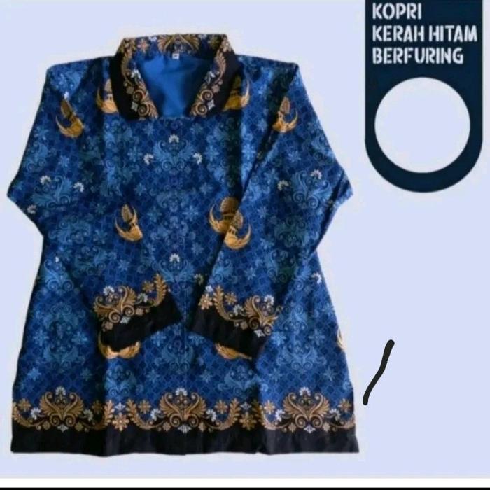 Batik Kopri Pria Dan Wanita Kerah Hitam Full Furing Baju Cowok Panjang Katun Hitam Kain Tangan Kancing - Pria, S