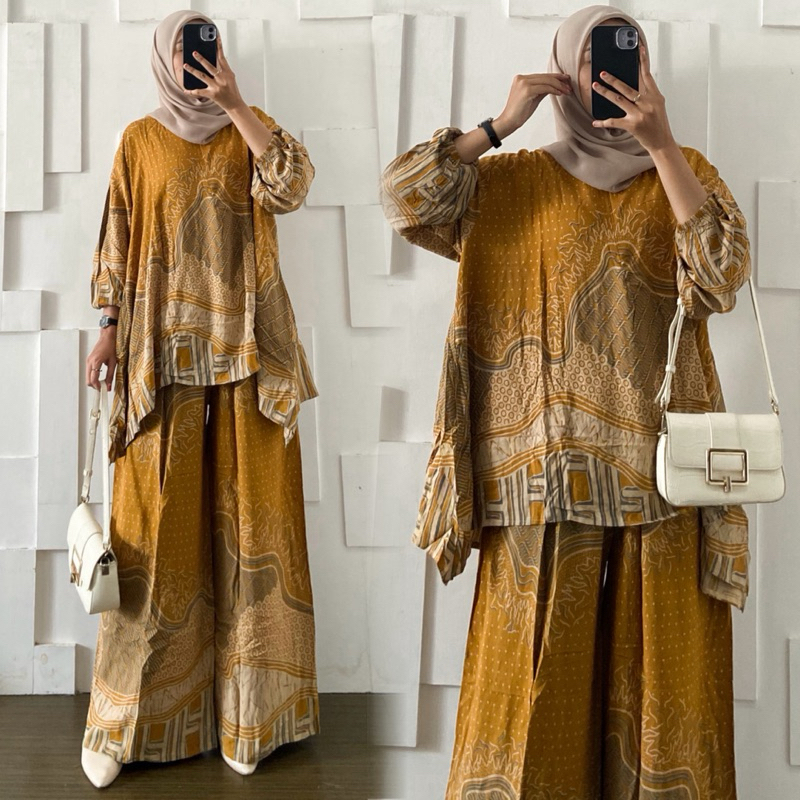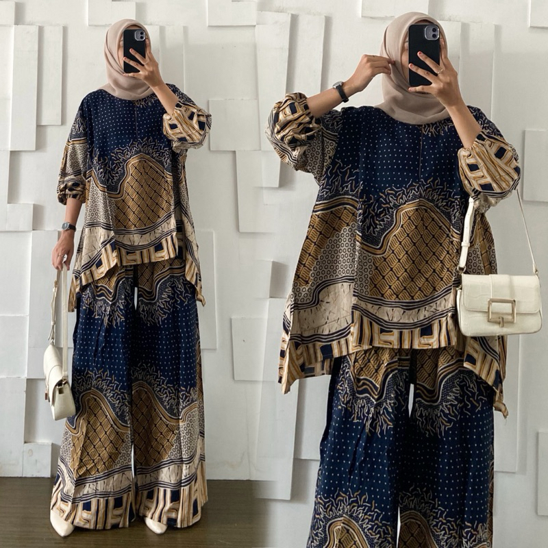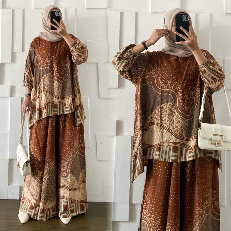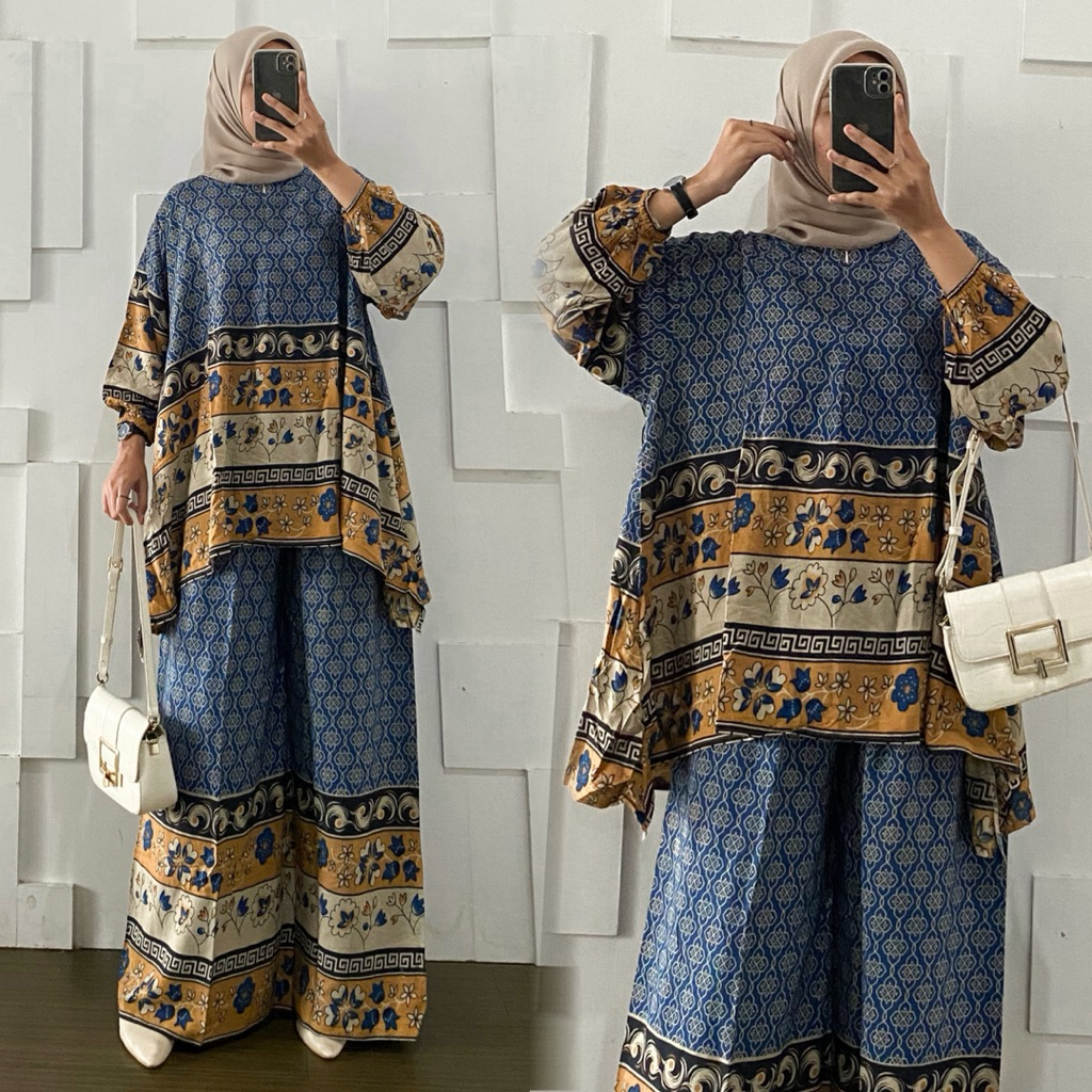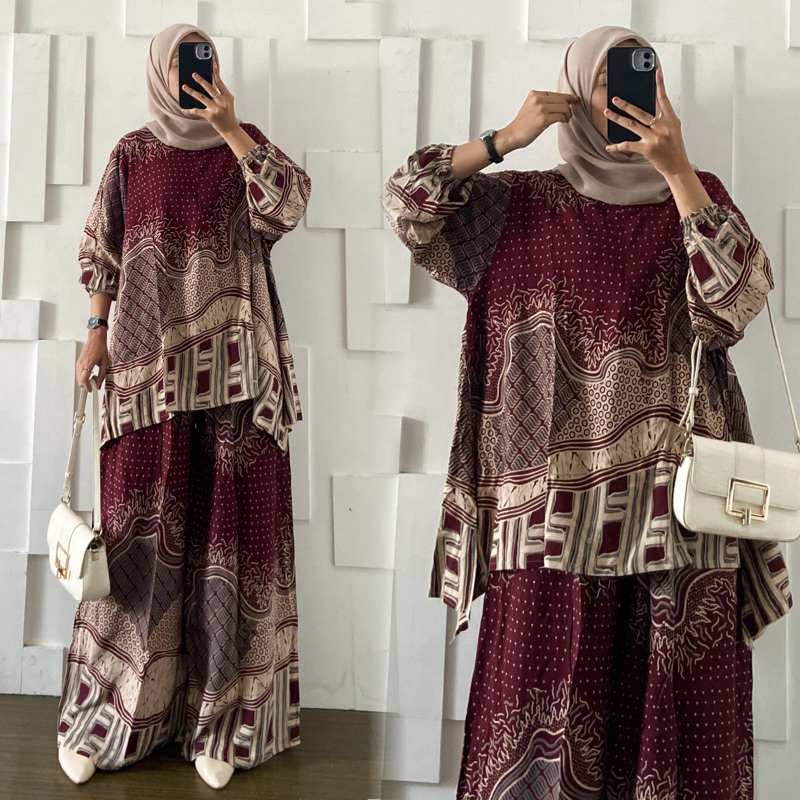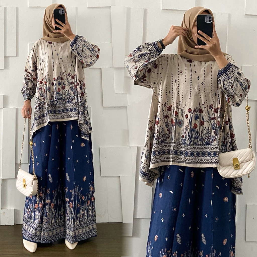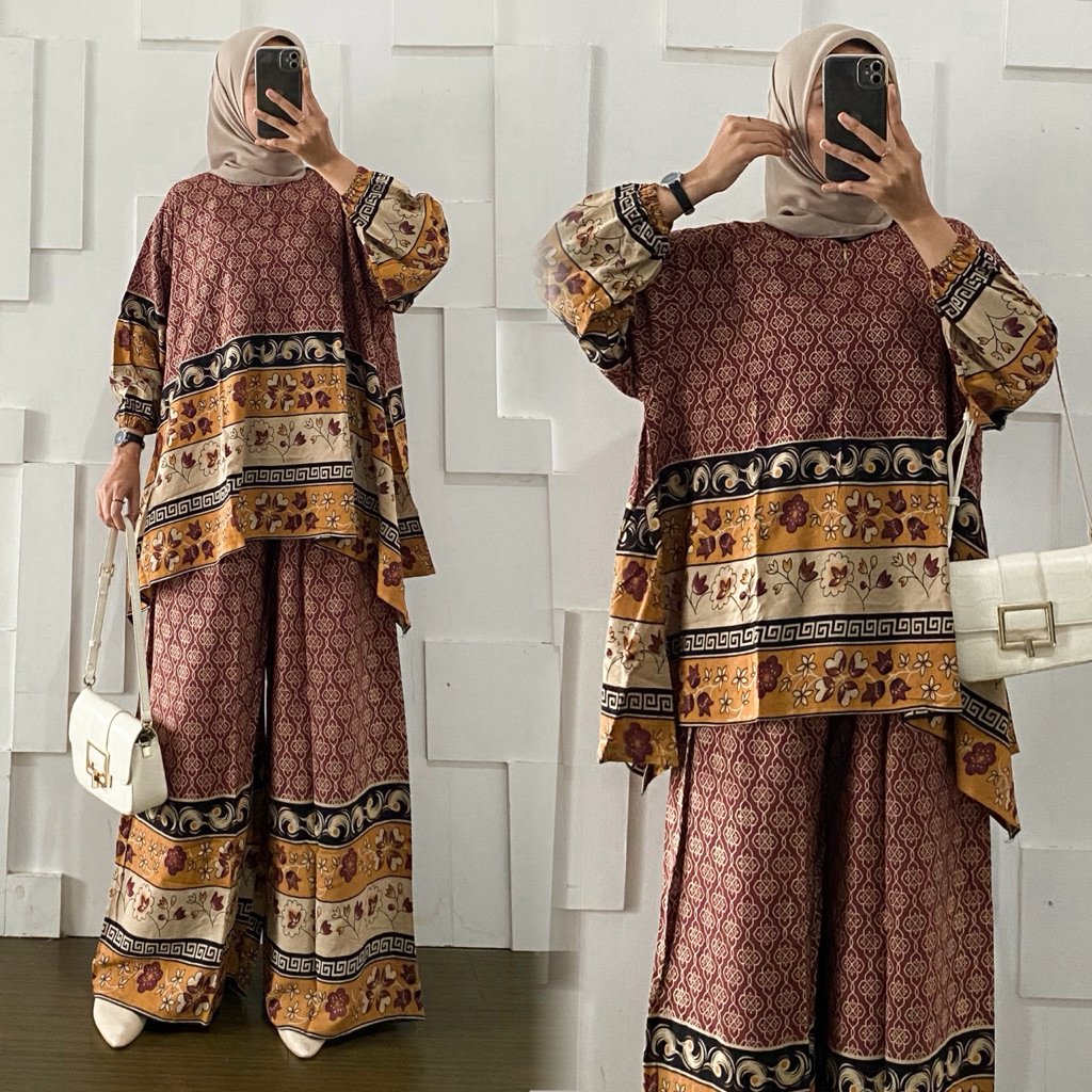 Sarah Setelan Blouse Batik Jumbo dan Celana Kulot Bahan Rayon Motif Adem Busui - by Kirania
