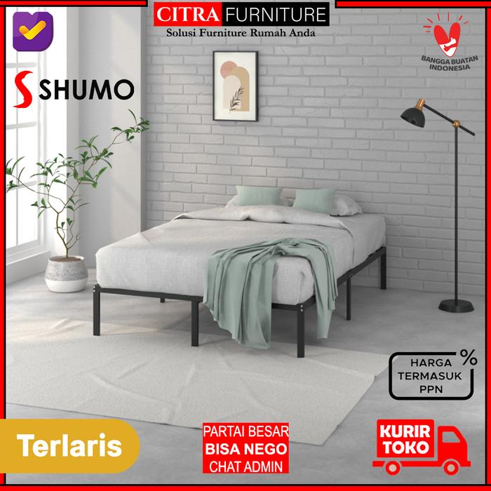 SHUMO DIPAN RANJANG BESI MINIMALIS KNOCK DOWN BED IN A BOX 140 X 200 - HITAM, 140X200