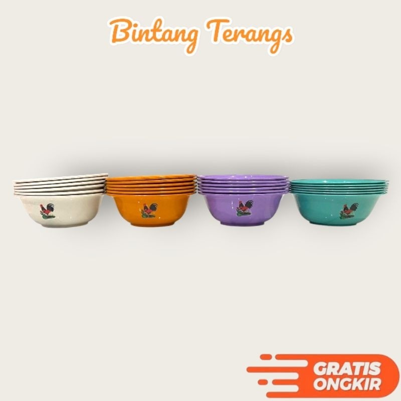 [ 12 pcs ] Paket Hemat Mangkok Ayam Jago Anti Pecah - Mangkuk Bakso & Mie Ayam dll Munimshop