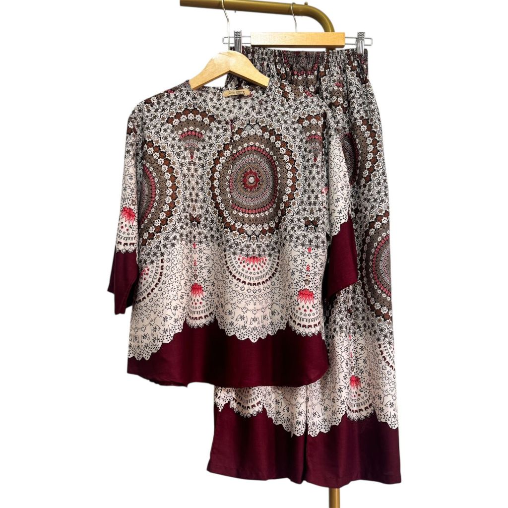 One set cantik elegan mewah bluse ziper cenala kulot