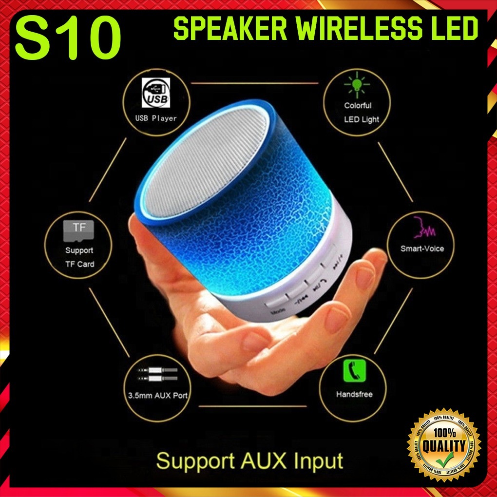 Speaker Bluetooth Portable Speker Mini Music Box LED S10 Lampu disco Kedap Kedip