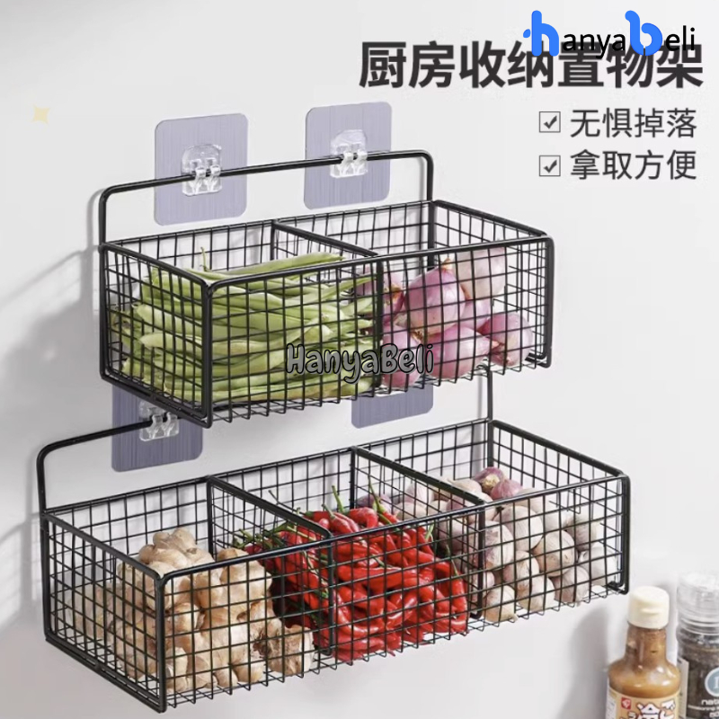Rak Penyimpanan Bawang Putih Jahe Rak Dapur Gantung Tempel Dinding Rak Keranjang Dapur Besi Wadah Tempat Penyimpanan Buah Sayur Tomat Telur