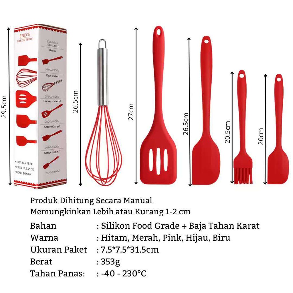 ANQI SHOP Set Spatula Peralatan Masak Sutil Silikon Non Stick Cooking Tools Isi 5 Pcs / VS