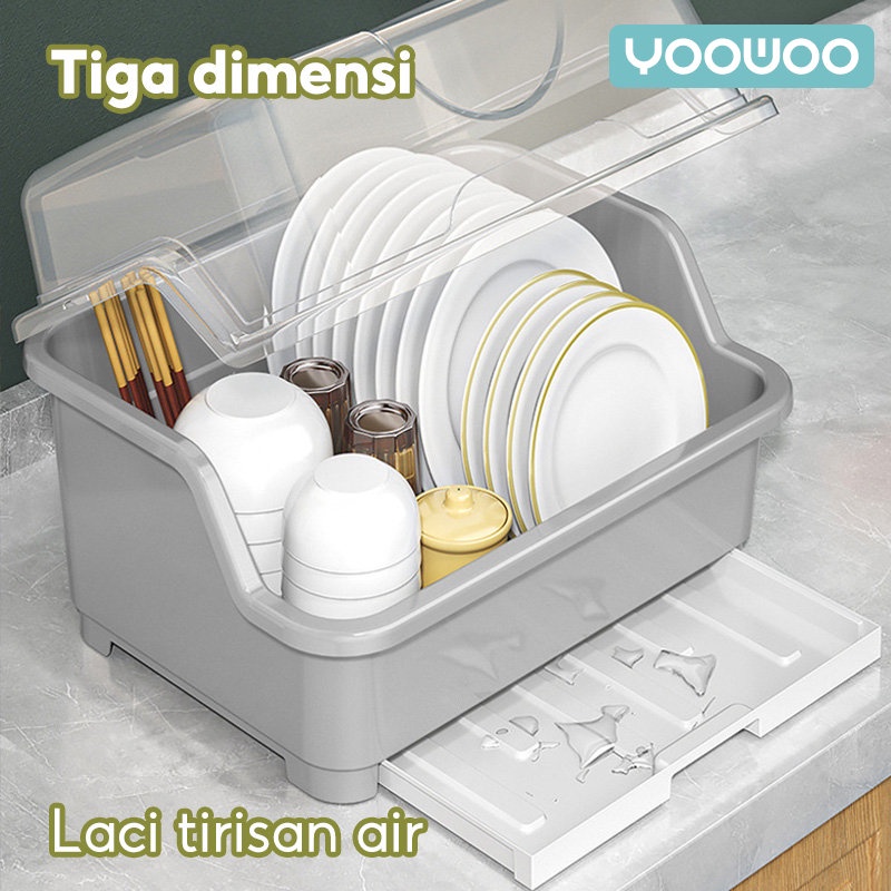 Rak Piring Plastik PP Minimalis YooWoo - Rak Dapur Tertutup Multifungsi