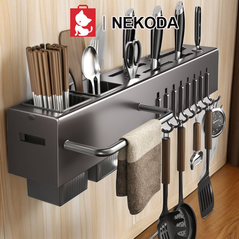 NEKODA Rak pisau dinding Dapur Stainless Steel Rak Gantung Dapur Multifungsi Rak Tempel Tanpa Bor/Rak sendok Garpu Gantung Dapurd